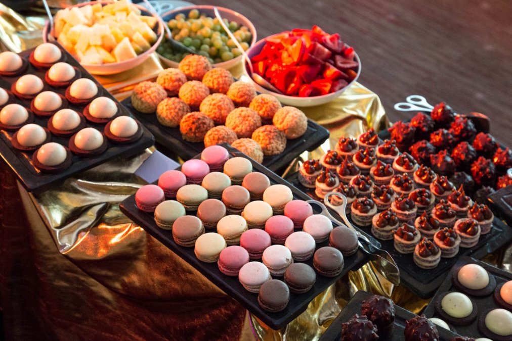 El buffet incluye una amplia estación de postres con pan de pascua, alfajores, chocolates
